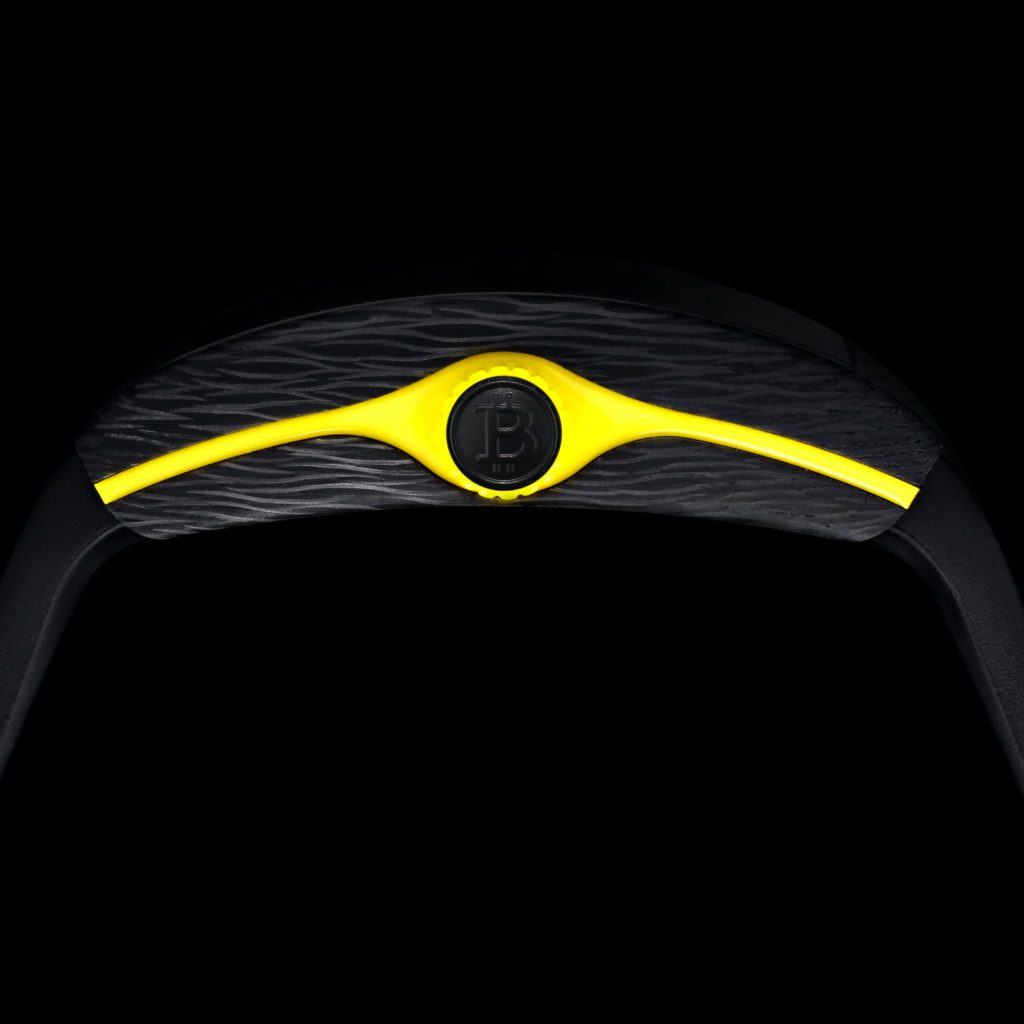 The Raging Bull black carbon fibre time piece is a stunning piece of watchmaking art, the carbon fibre case is infused with gold, unique to Franck Mullers ultra-limited-edition pieces. A skeletonized dial gives way to the intricate inner workings.